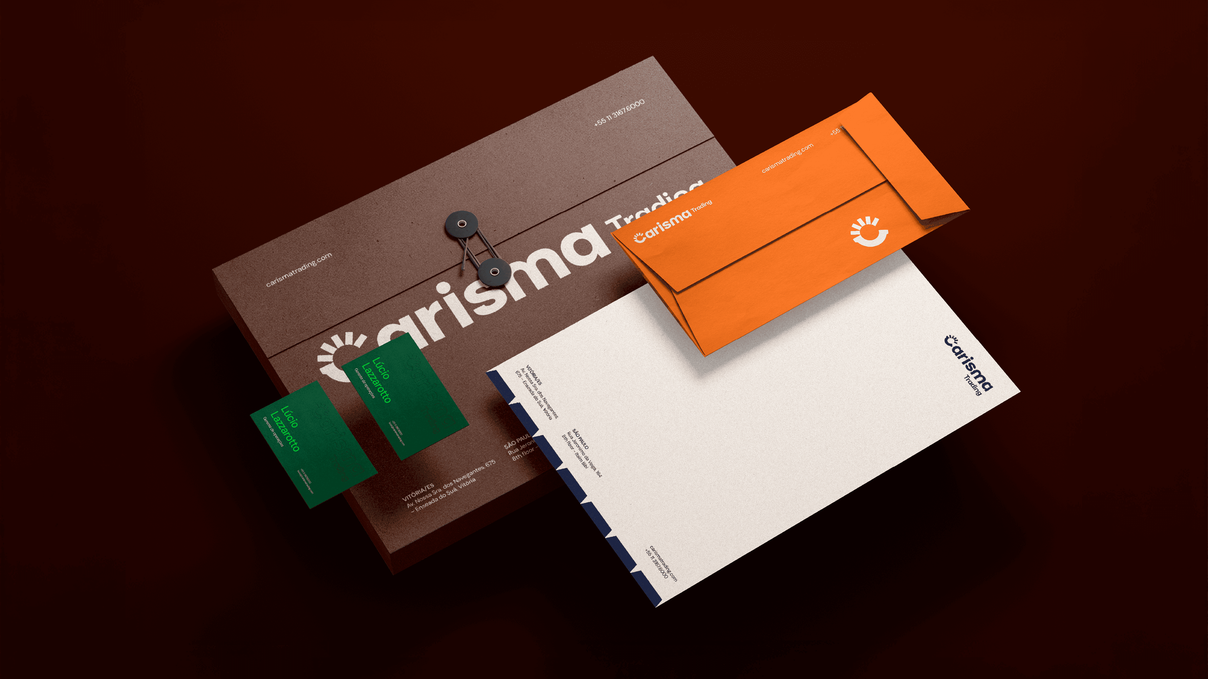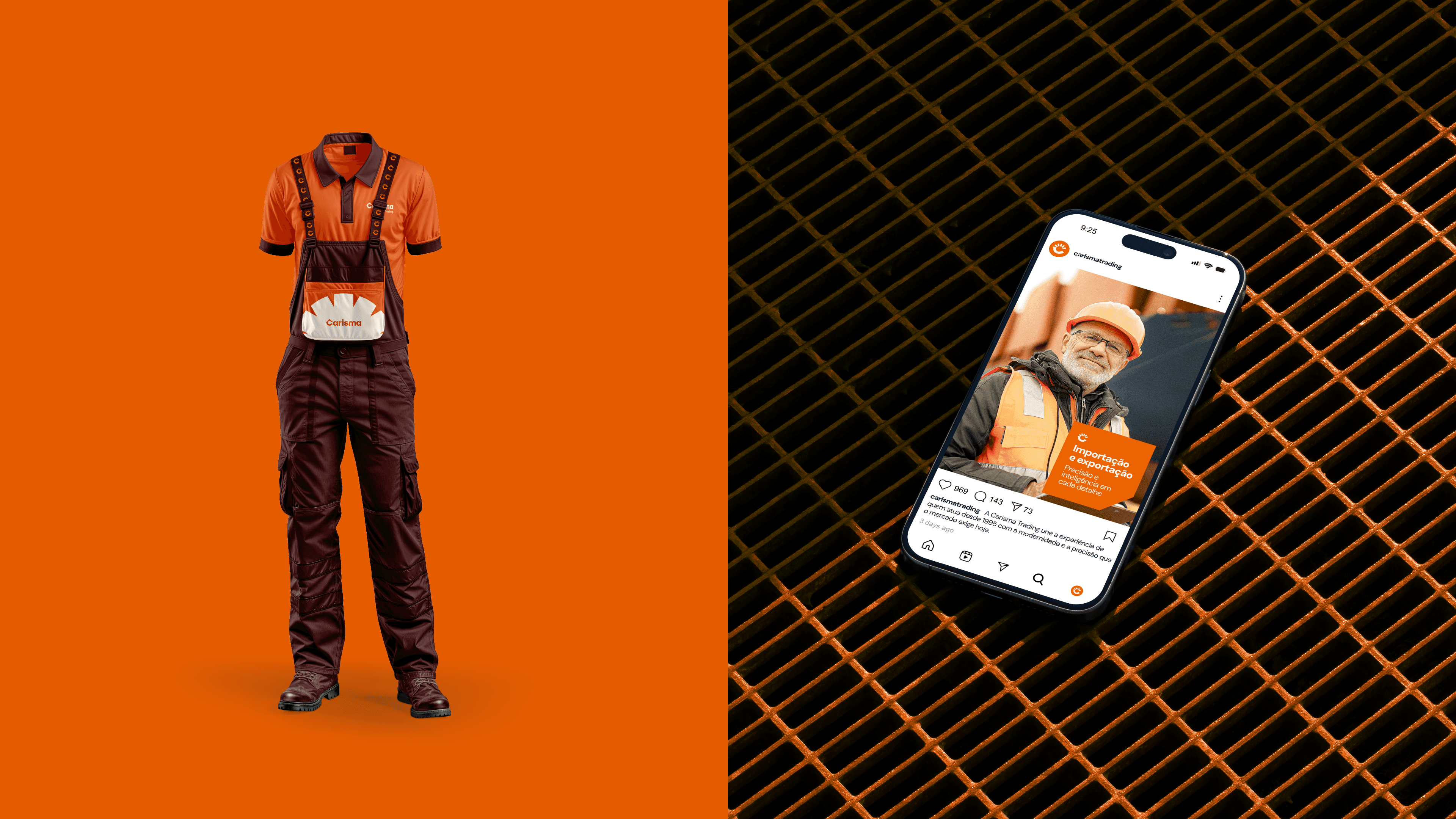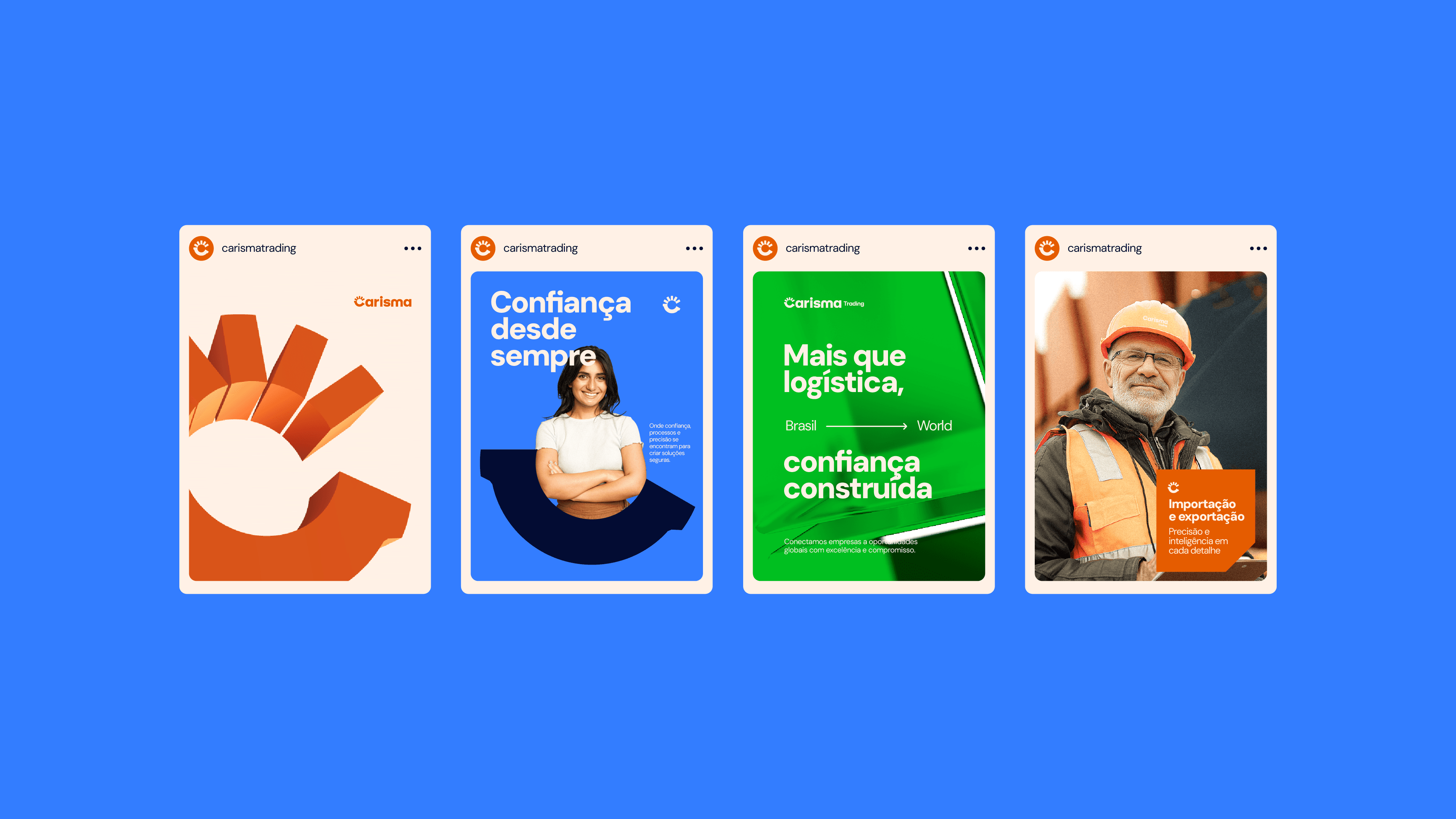 A nova identidade visual comunica com autenticidade, posicionando a Carisma como uma empresa verdadeiramente confiável, acessível e contemporânea em seu mercado. O novo sistema visual garante que a marca tenha uma presença digital forte e memorável, ao mesmo tempo em que constrói credibilidade no ambiente físico e prepara o terreno para a expansão de novos produtos e serviços. A padronização através de fundos minimalistas translúcidos, também inspirados em containers, e o uso de uma iconografia de traços simples e modernos conferem uma imensa flexibilidade e unidade às aplicações. Com essa construção estratégica, o projeto consegue ir além do design e estabelece uma base sólida e duradoura para que a Carisma Trading continue crescendo de maneira consistente, sendo amplamente reconhecida não apenas pela inteligência técnica, mas também por sua empatia, funcionalidade e inovação contínua na experiência de entrega.